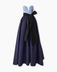 Crafted of lustrous silk-faille, this colorblocked gown features a ruched sweetheart bodice with a plunging U-neckline and a voluminous ball skirt, punctuated by a black sash tie. Wired U-neckline Side pockets Concealed zip fastening at the back SKU P2511N716SFA SIZE & FIT Close-fitting through bodice, voluminous ball skirt Midweight silk-faille Model is 178cm/ 5’10” and is wearing a US 2 Bust: 31" Waist: 23" Hips: 34" COMPOSITION & CARE 100% Silk Washing Instructions Dry Clean Only Made in United States of America
