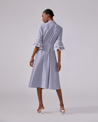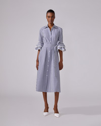 Tiered sleeves with embroidered lace trims bring romance to this striped cotton shirt dress. Point collar Buttoned front Belted waist Lace trim at the cuffs SKU E2511E519SCS SIZE & FIT Regular-fitting top, A-line midi skirt, sash-tie waist Midweight non-stretchy cotton Model is 180cm/ 5’11” and is wearing a US 2 Bust: 31" Waist: 23" Hips: 34.5" COMPOSITION & CARE 100% Cotton Washing Instructions Dry Clean Only
