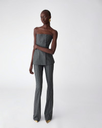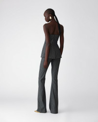 These pants are cut from pinstriped wool-blend flannel in a modern bootcut silhouette, for a fresh twist on traditional tailoring. Style with matching pieces from the collection. Concealed zip closure at the side SKU F2511N421PFN SIZE & FIT Slim fit with flared hem Midweight stretch-flannel Model is 179cm/ 5’11” and is wearing a US 2 Bust: 29.5" Waist: 22" Hips: 34.5" COMPOSITION & CARE 46% Reinforced Woven, 36% Linen/Viscose Blend, 17% Recycled Nylon, 1% Elastane Washing Instructions Dry Clean Only Made in Italy