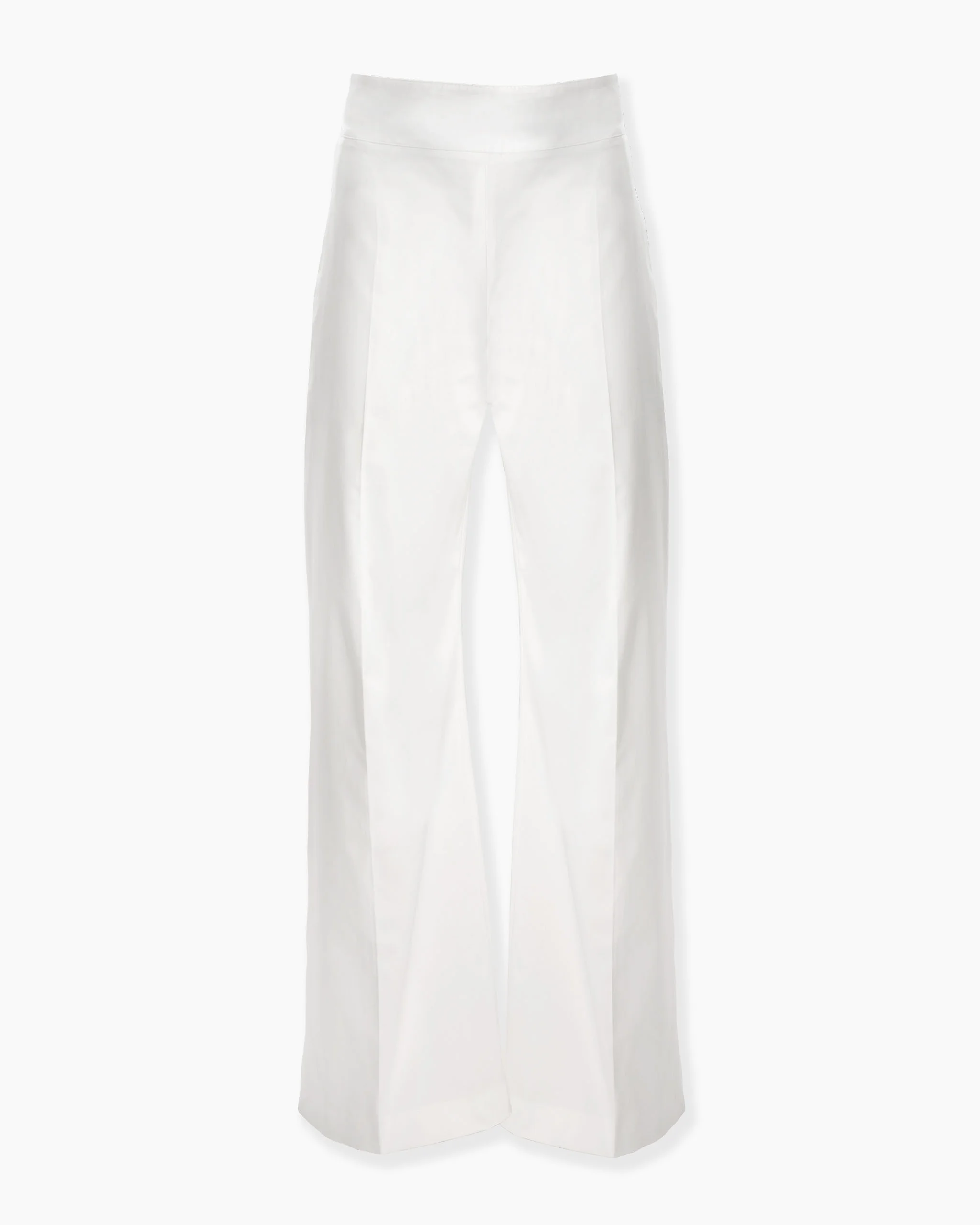 Create the illusion of sky-high legs with these high-rise pants, tailored in stretch-cotton sateen with a floor-sweeping, wide-leg silhouette. Side pockets Concealed zip fastening at side Lined SKU E2511N413STS SIZE & FIT High-rise, wide-leg fit Midweight stretchy cotton Model is 178cm/ 5’10” and is wearing a US 2 Bust: 31" Waist: 23" Hips: 34" COMPOSITION & CARE 96% Cotton 4% Elastane Washing Instructions Dry Clean Only Made in Italy