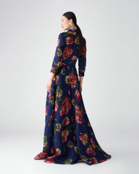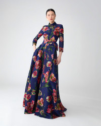 Vibrant tulips blossom on this silk-gazar version of our iconic trench gown. The fitted bodice flares out to a full skirt, cinched at the waist with a self-tie sash for a graceful, feminine silhouette. Point collar Buttoned closures at the front SKU F2511N722TGA SIZE & FIT Close-fitting through bodice, voluminous ball skirt Midweight silk-gazar Model is 178cm/ 5’10” and is wearing a US 2 Bust: 29" Waist: 23" Hips: 34.5" COMPOSITION & CARE 100% Silk Washing Instructions Dry Clean Only Made in United States of America
