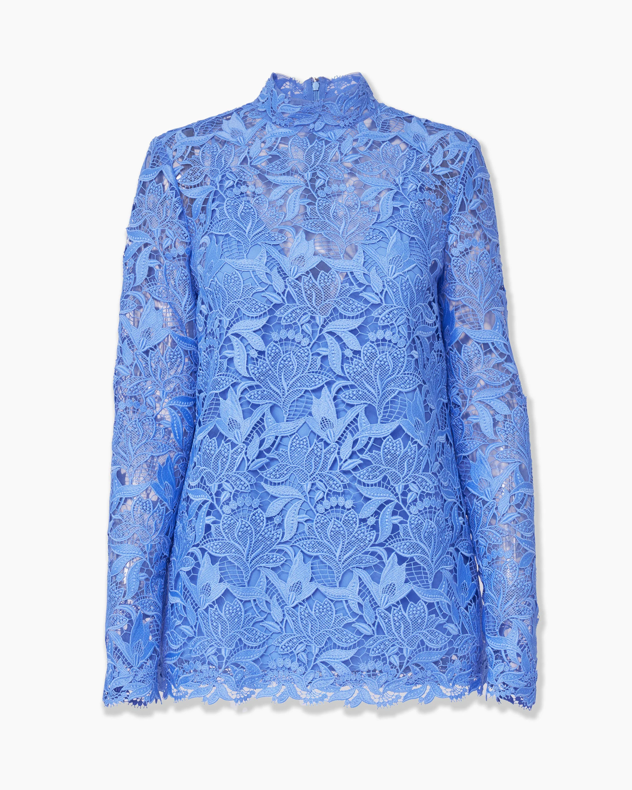 The season's tulip motifs are rendered in intricate, textural guipure lace on this mock-neck top, which is finished with a scalloped hem and cuffs. Style it with the matching bootcut pants, as it was on the runway. Runway style Lined with a V-neck stretch cami SKU F2511N210TUF SIZE & FIT Regular fit Midweight floral lace Model is 179cm/ 5’11” and is wearing a US 2 Bust: 29.5" Waist: 22" Hips: 34.5" COMPOSITION & CARE 100% Polyester Washing Instructions Dry Clean Only Made in Italy