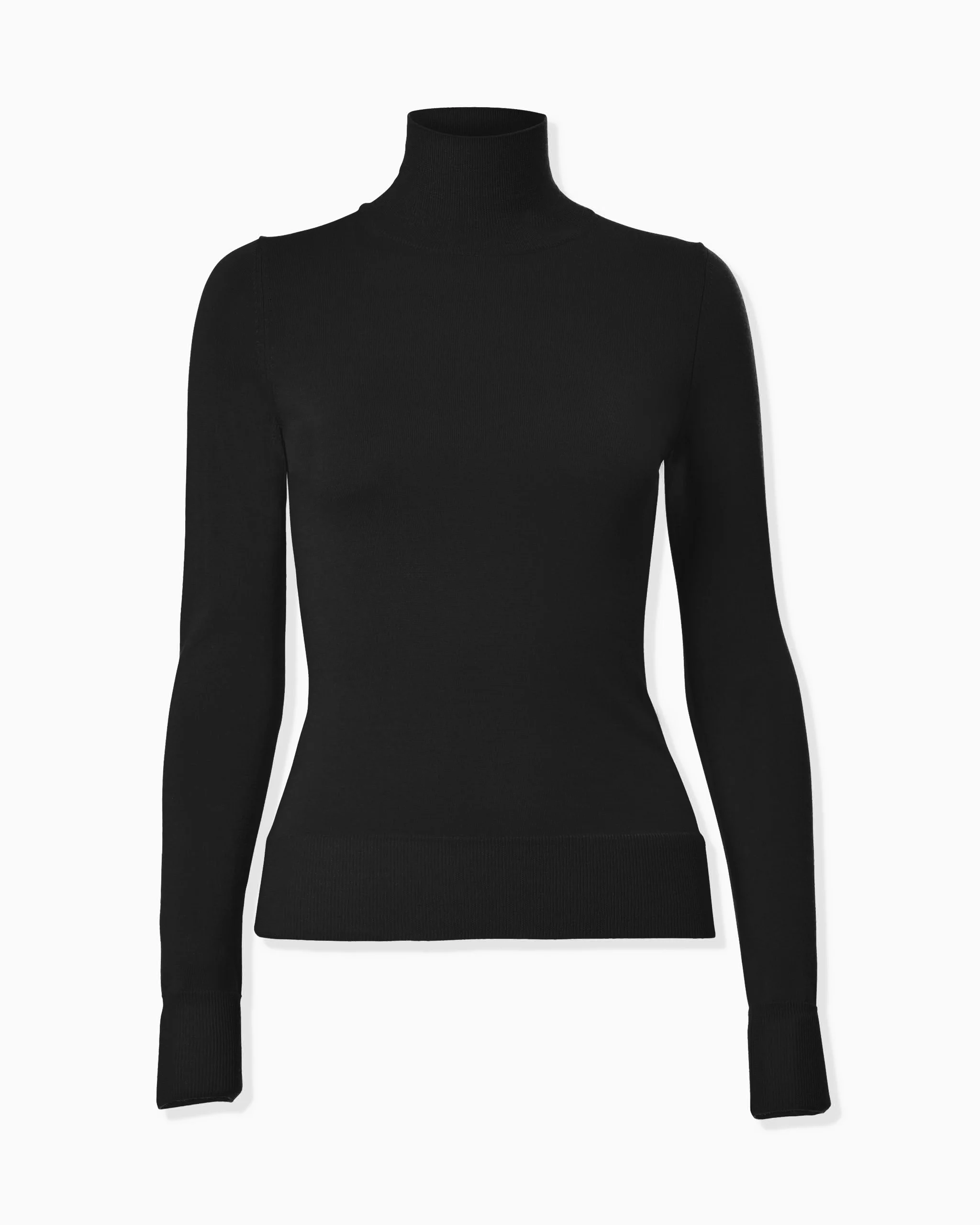 Knit from a fine wool-cashmere blend, this lightweight turtleneck is cut for a slim fit and designed for effortless layering. Style it with the matching Shawl-Collar Jacket and Wide-Leg Diane pants. SKU C2612N205KSE SIZE & FIT Slim fit Midweight silk Model is 176cm/ 5’9” and is wearing a US 2 Bust: 29.5" Waist: 23" Hips: 33.5" COMPOSITION & CARE 70% Virign Wool 30% Cashmere Washing Instructions Dry Clean Only