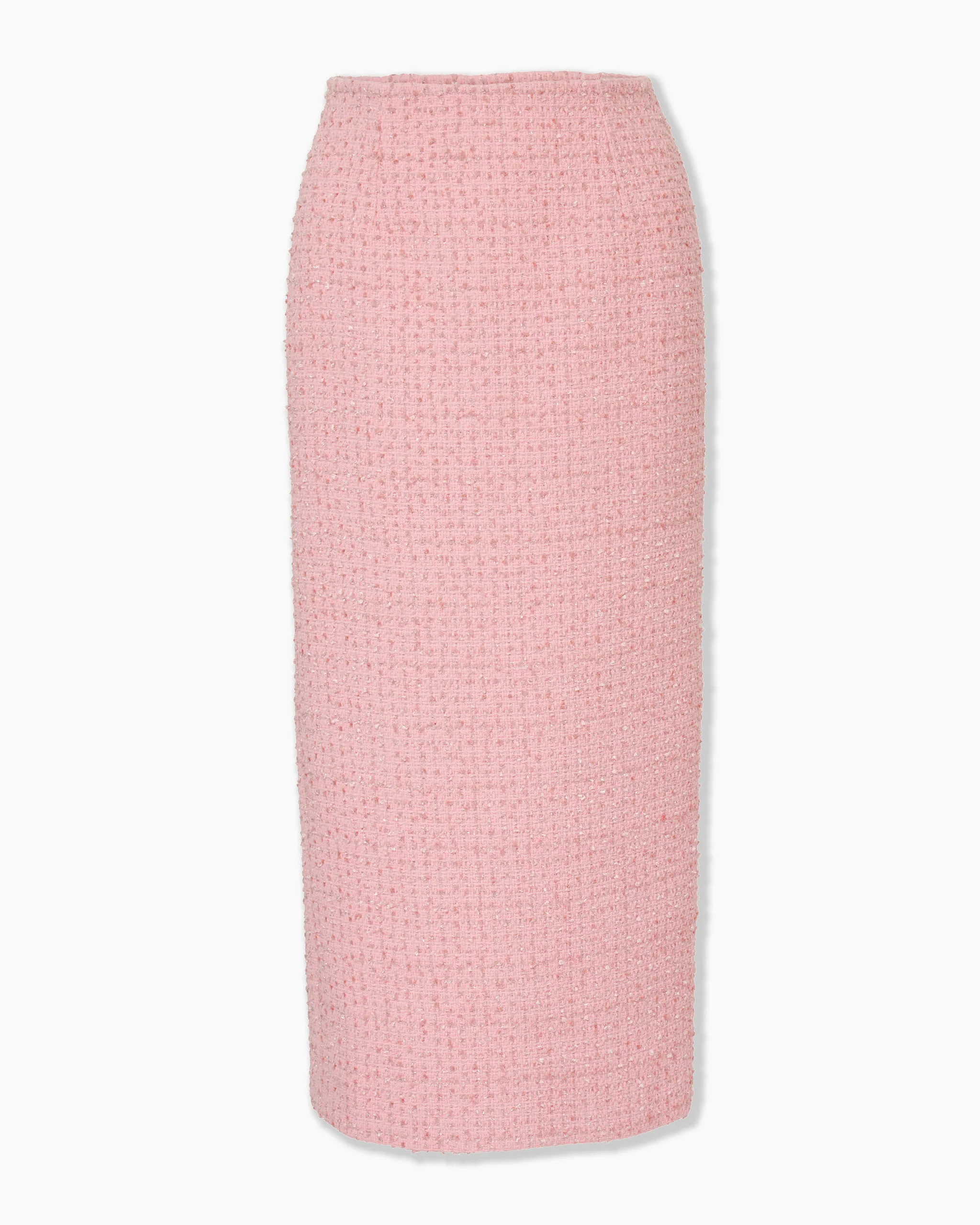 This midi pencil skirt is tailored from soft, shimmering cotton-blend tweed. Style it with tonal knits from the collection. Back slit Concealed zip fastening at the back SKU P2511N319CNT SIZE & FIT High-waisted, slim fit, midi length Midweight cotton-blend tweed Model is 179cm/ 5’11” and is wearing a US 2 Bust: 29.5" Waist: 22" Hips: 34.5" COMPOSITION & CARE 48% Cotton 32% Polyester 20% Nylon Washing Instructions Dry Clean Only Made in Italy