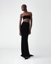 This sleek bandeau top is cut from plush velvet with a hint of stretch. For a contemporary take on evening wear, pair it with its matching skirt, as it was on the runway. Runway style Concealed zip closure at the back SKU F2511N214STV SIZE & FIT Slim fit Midweight stretch-velvet Model is 179cm/ 5’11” and is wearing a US 2 Bust: 29.5" Waist: 22" Hips: 34.5" COMPOSITION & CARE 100% Rayon Washing Instructions Dry Clean Only Made in United States of America