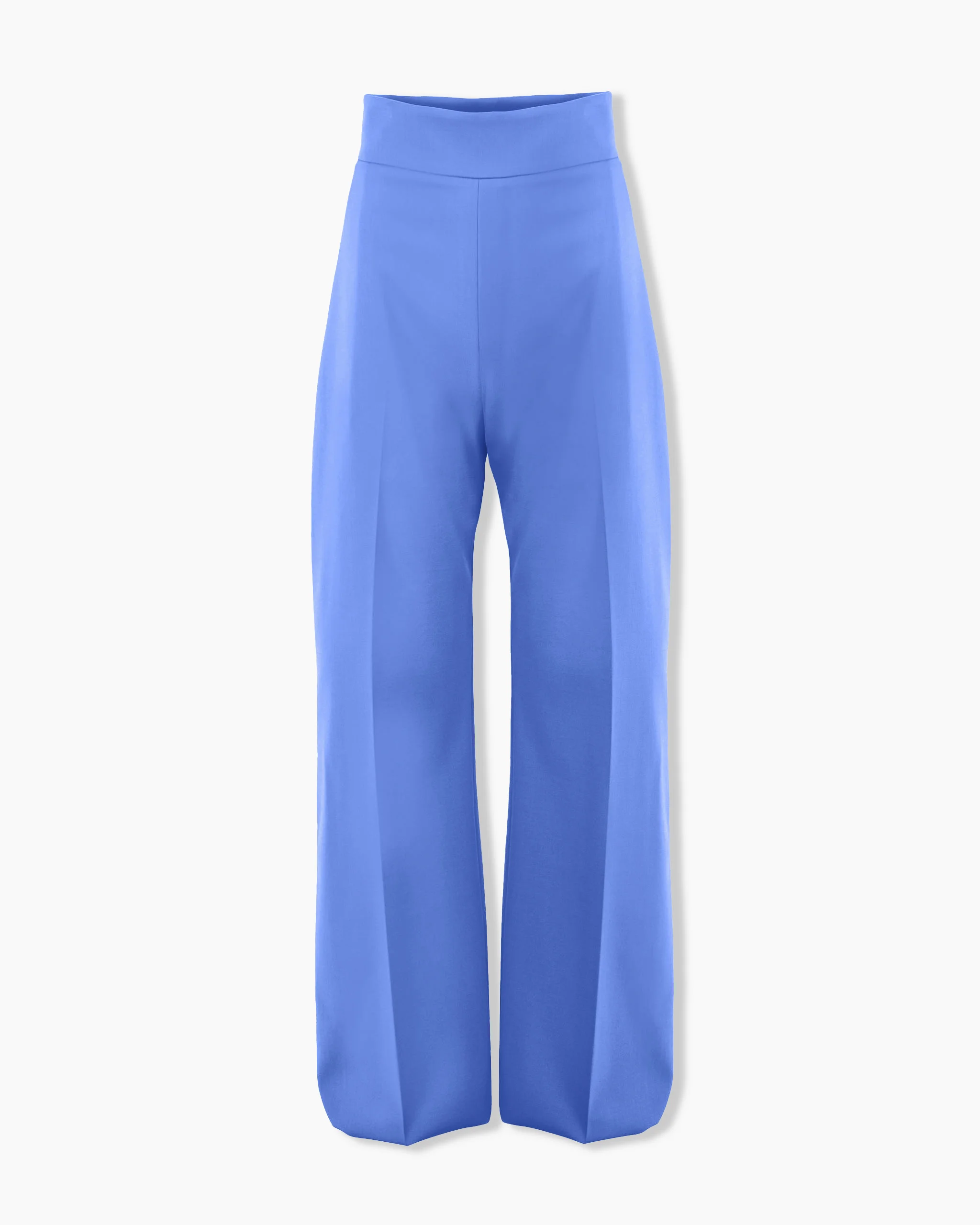 These high-rise pants are tailored from bi-stretch wool in a vibrant Aegean-inspired hue with a floor-sweeping, wide-leg silhouette. Pair them with tonal separates for a polished, monochromatic look. Concealed zip fastening at the side SKU R2611N411BWT SIZE & FIT High-rise, wide-leg fit Heavyweight stretch-wool Model is 179cm/ 5’9” and is wearing a US 2 Bust: 30" Waist: 24" Hips: 34" COMPOSITION & CARE 97% Wool 3% Elastane Washing Instructions Dry Clean Only Made in Italy