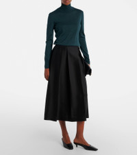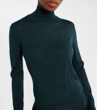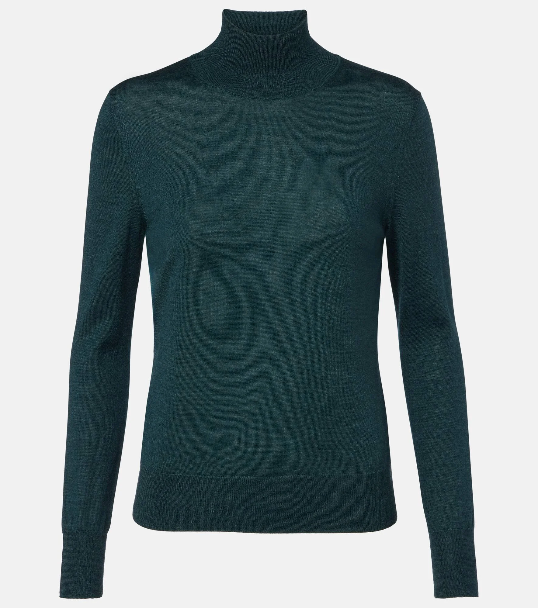 Crowned the best-dressed woman of all time, Carolina Herrera's namesake brand has a fashion prowess that reigns supreme. This turtleneck sweater is crafted from wool and silk and guarantees warmth and softness during colder months. Product Details - Material: 70% wool, 30% silk - Care instructions: dry clean - Made in China - Designer color name: Pine Green - Item color: green - Collar: turtleneck - Cuff: ribbed - Hem: ribbed - Item number: P01091873 Size & Fit - True to size - Straight fit - Stretchy fabric - Falls to the hip - The model seen in the picture is 178cm-5'10" and wearing a size XS
