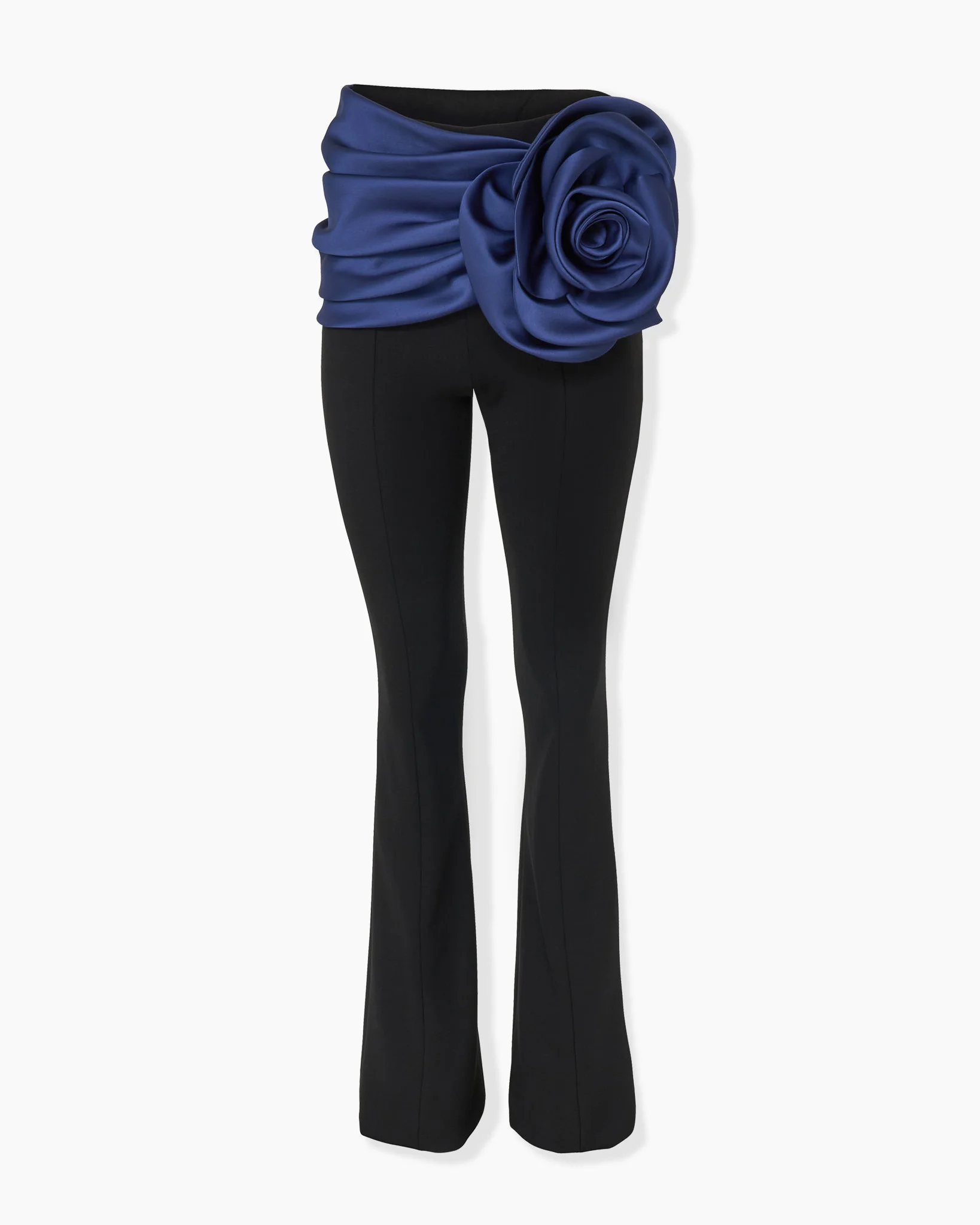 A handcrafted, oversized satin rosette blooms at the hip of these bootcut pants, tailored from stretch-wool with a close fit through the thighs that gently flares out along the calves. Runway style Concealed zip fastening at the side SKU F2511N416BWT SIZE & FIT Slim fit with flared hem Heavyweight stretch-wool Model is 178cm/ 5’10” and is wearing a US 2 Bust: 32" Waist: 23.5" Hips: 34.5" COMPOSITION & CARE 97% Virgin Wool, 3% Elastane Washing Instructions Dry Clean Only Made in United States of America