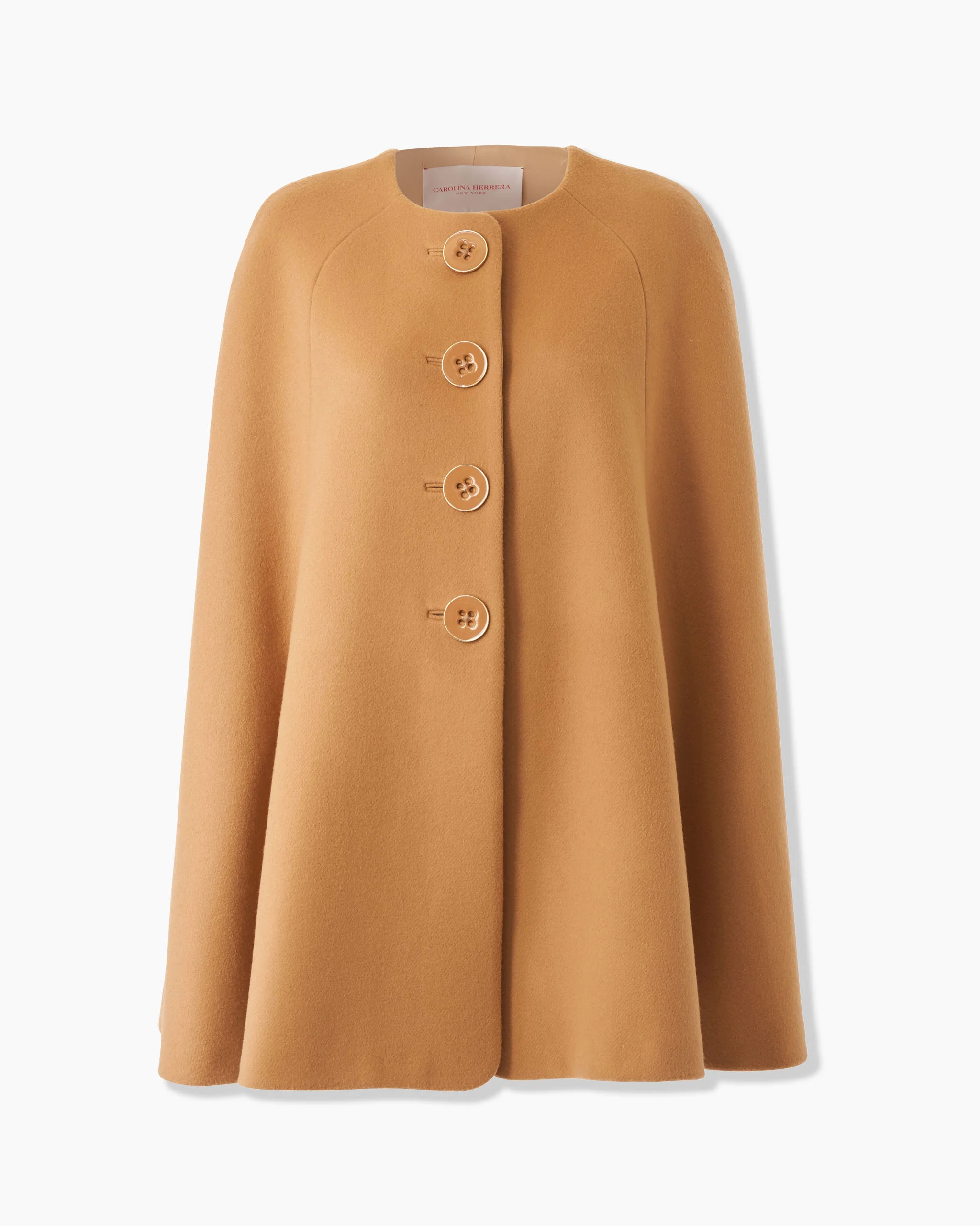 Cut from heavyweight wool, this dramatic cape features oversized buttons inspired by the 1950's doll collection of Wes Gordon's mother. Buttoned front Arm holes at the waist SKU P2511N600WLC SIZE & FIT Relaxed, slightly-oversized fit Heavyweight wool Model is 178cm/ 5’10” and is wearing a US 2 Bust: 31" Waist: 23" Hips: 34" COMPOSITION & CARE 100% Wool Washing Instructions Dry Clean Only Made in United States of America