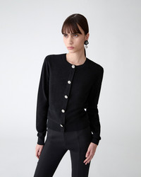 This lightweight black wool cardigan is embroidered with scattered micro-paillettes, creating a subtle shimmer. It is adorned with ornate pearl-cluster buttons for a jewel-box finish. SKU C2612N104KWQ SIZE & FIT Slim fit Lightweight sequinned-wool Model is 175cm/ 5’9” and is wearing a US 2 Bust: 31" Waist: 23.5" Hips: 35.5" COMPOSITION & CARE 97% Wool 3% Elastane Washing Instructions Dry Clean Only