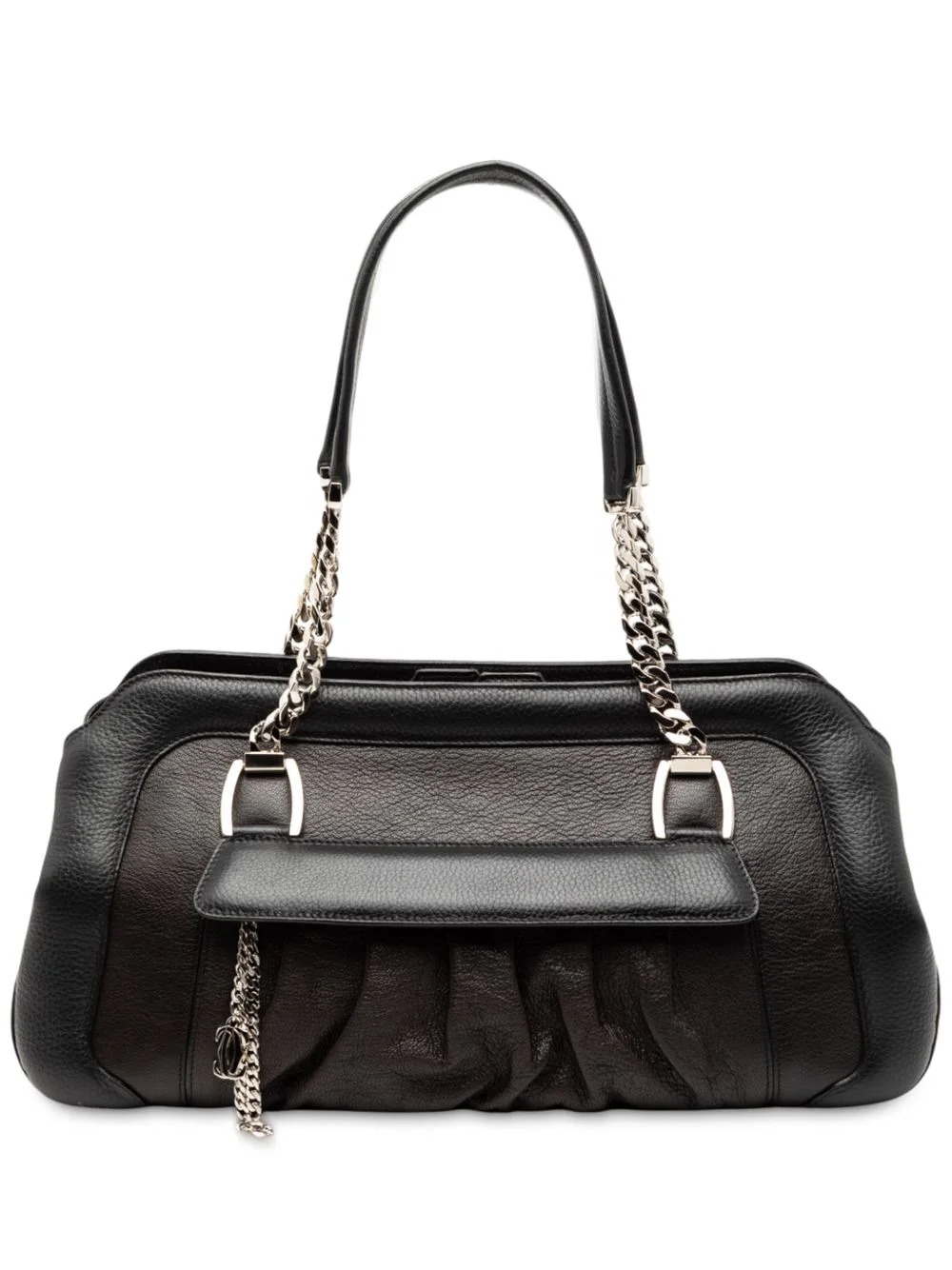 2010-2025 Leather La Dona shoulder bag Highlights - Leather body - Curb chain straps - Top magnetic closure - Exterior front zip and back slip pockets - Interior zip and slip pockets - Black - Serial number: eu-nb - Inclusions: dust bag, authenticity card. - Condition: excellent. this previously owned item is in near-perfect condition with no signs of damage or use. - Due to the exclusivity of this item and its limited availability, processing and delivery might take longer than usual. - Please refer to the photos on this product page for a detailed view of the item, including any damages declared. Made in Italy Composition Outer: Calf Leather 100% SIZE & FIT Measurement DEPTH 5.31 in(13.5 cm) WIDTH 15.74 in(40 cm) HEIGHT 0.98 in(2.5 cm) HANDLE 9.25 in(23.5 cm)