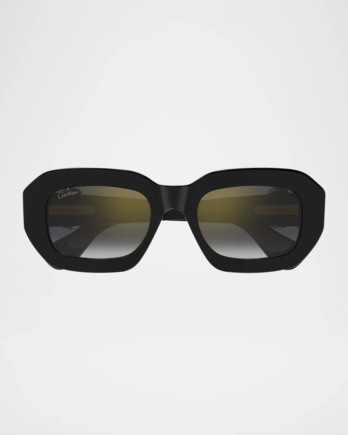- Cartier "CT0546S" rectangle sunglasses in acetate - Eye/bridge/temple (in mm): 52-20-140 - Gradient lenses; right logo script - Saddle nose bridge - Thin, tapered arms - 100% UVA/UVB protection - Made in Italy - Proposition 65 warning for California residents