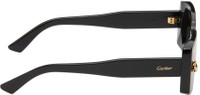 Rectangular acetate-frame sunglasses in black. · Gray lenses · 100% UV protection, Category 3 · Integrated nose pads · Graphic hardware at face · Inset logo at temples · Includes case · Size: 64.13 145 Part of the Panthere de Cartier collection. Supplier color: Black