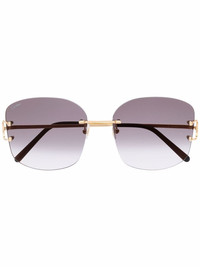 C Decor square-frame sunglasses '90s fans rejoice. With a rimless design and sleek gold-tone hardware, these Cartier Eyewear sunglasses will take you back to your favourite fashion era. Throwback playlist at the ready. Made in France Composition Metal (Other) 80%, Acetate 20% SIZE & FIT Measurement Arm Length 5.51 in(14 cm) Bridge Width 0.7 in(1.8 cm) Lens Diameter 2.16 in(5.5 cm) Total Width 5.9 in(15 cm)