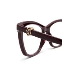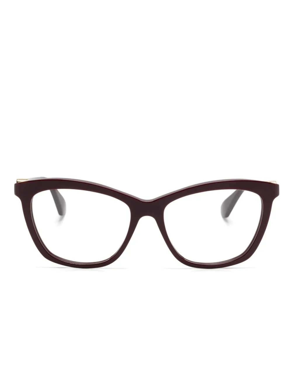 cat-eye glasses Highlights - Burgundy - Cat-eye frame - Clear lenses - Straight arms - Logo plaque at the arm - Curved tips - All glasses from farfetch are sold as non-prescription frames. - These glasses come with a protective case. Made in Italy Composition Acetate 100% SIZE & FIT Measurement Arm Length 5.51 in(14 cm) Bridge Width 0.51 in(1.3 cm) Lens Diameter 2.04 in(5.2 cm) Total Width 5.55 in(14.1 cm)