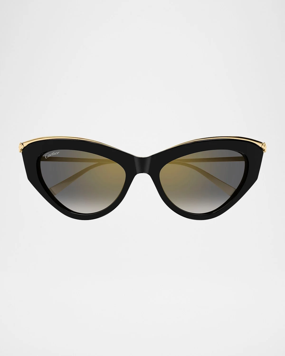 Celebrate the untameable elegance of the panther with the Cartier "CT0596S001" metal and acetate sunglasses from the Panthere de Cartier Collection, featuring the panther icon at the end pieces on the brow. Lens/bridge/temple (in mm): 5518140 Oversized cateye frames Mirrored gradient lenses Fixed nose pads Thin, tapered arms with engraved logo script on the temples 100% UVA/UVB protection Made in France