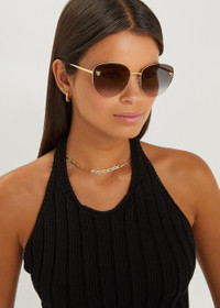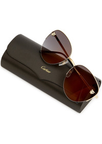 Info & Care Cartier gold-tone sunglasses Graduated grey lenses signature panther plaques half-rim frame designer-engraved arms black acetate tips 100% UV protection Presented in a designer-stamped box with a hard case and cleaning cloth Size & Fit Frame width: 14cm Frame height: 5cm