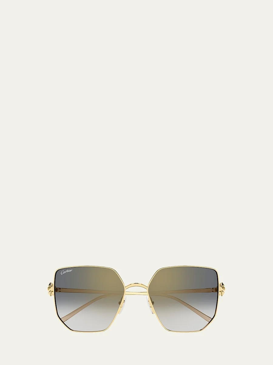 Cartier "CT0645S" butterfly sunglasses feature the collection's signature picot accents on the temples. Eye/bridge/temple (in mm): 5617135 Mirrored gradient lenses Adjustable nose pads Lasered logo on the right lens Metal 100% UVA/UVB protection Made in France