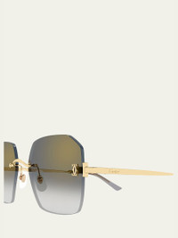 Cartier rimless geometric sunglasses crafted of smooth goldtone metal Eye/bridge/temple (in mm): 5816140 Gradient mirrored lenses Adjustable nose pads Decor C Classique motif at temples Engraved logo Thin, tapered arms Metal 100% UVA/UVB protection Made in France