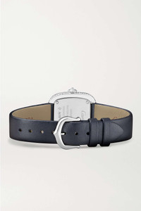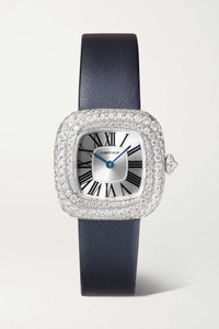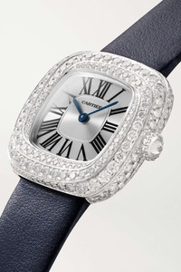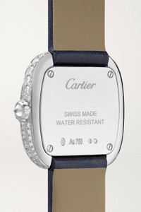 EDITORS'NOTES Cartier's 27mm watch is part of the label's 'Coussin' - the French word that translates to cushion, which refers to the timepiece's case that's encrusted with 166 brilliant-cut diamonds. Meticulously crafted from 18-karat white gold, it has a sunray silvered dial featuring classic Roman numerals and blued steel sword-shaped hands and is powered by a Swiss-made quartz movement. The Ardillon buckle ensures the smooth leather strap fits comfortably around any size wrist.<br><br>All Cartier watches still within the initial 2-year warranty period under the original International Limited Warranty will be eligible to benefit from a 6-year extension, for a total of 8 years warranty. SIZE & FIT This item’s measurements are: - Min. Strap Length: 15cm / 5.9in - Max. Strap Length: 19cm / 7.5in - Diameter: 2.5cm / 1in DETAILS & CARE - Movement - Swiss-made quartz movement Functions - Hour and minute hands Dial - Sunray silvered dial - Blued steel sword-shaped hands, black Roman numerals Case - 18-karat white gold case - Brilliant-cut diamonds, total weight: 3.04-carats - Crown for date and time adjustments - Sapphire glass crystal - Engraved case back - Ardillon buckle-fastening navy leather strap (Calf) Specifications - Case diameter: 27mm; case thickness: 7mm - Water resistance: 3 bar - Comes in a presentation box - Reference number: CRWJCS0002 Cartier creations are manufactured with the greatest care by Cartier workshops in the purest tradition of jewelry and watchmaking, thus giving each piece a unique character. As a result, information on the carat weights in relation to a model may vary slightly from one piece to another and are therefore given for information only.