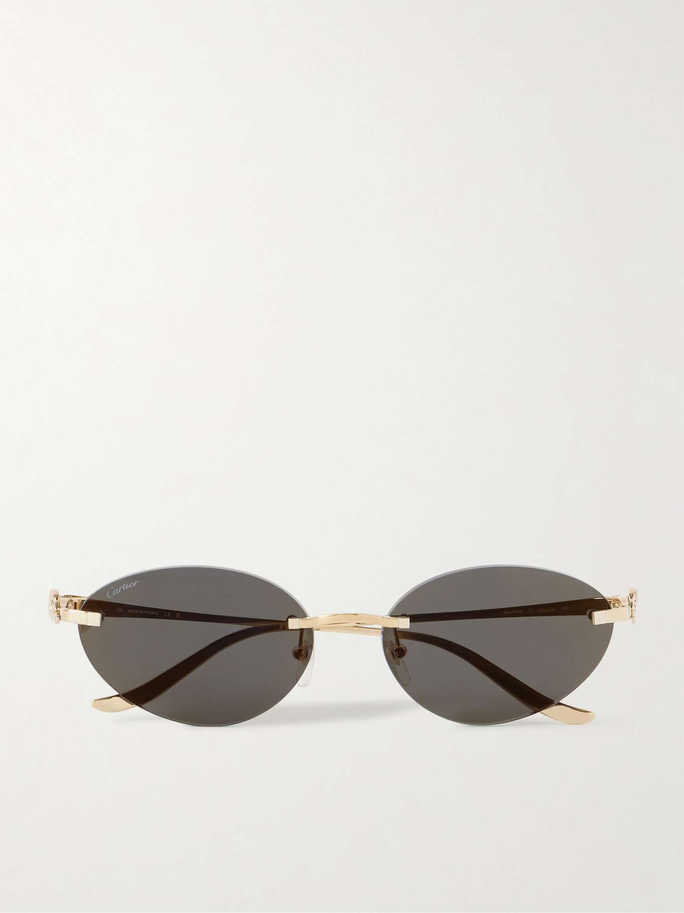EDITORS'NOTES Cartier Eyewear’s ‘Panthere’ sunglasses feel like an extension of the house's iconic jewelry. Made in France from gold-tone metal, this cat-eye pair has a rimless design and slim arms sculpted with the feline at the temples. DETAILS & CARE - Gold-tone metal - 100% UV protection