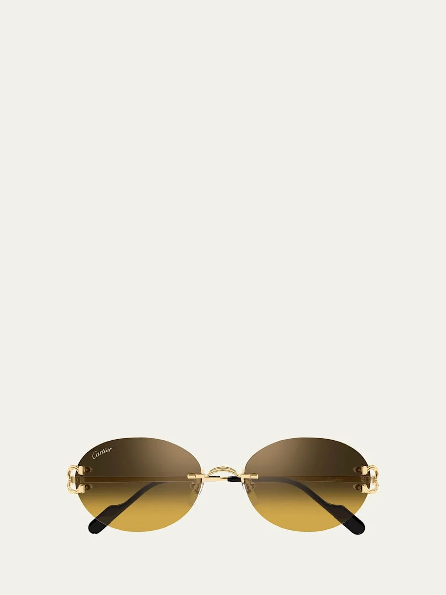 Decor Classic C de Cartier 55mm Rimless Oval Metal Sunglasses
