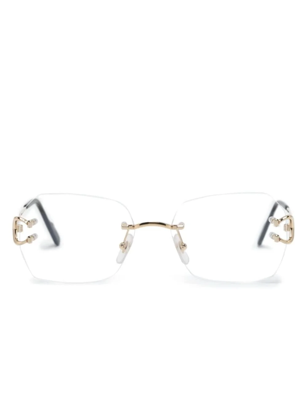 frameless square glasses Highlights - Gold-tone - Clear lenses - Frameless design - Nose pads - Logo-engraved arm - Straight arms - Curved tips - All glasses from farfetch are sold as non-prescription frames. - These glasses come with a protective case. Made in France Composition Metal (Other) 100% SIZE & FIT Measurement Arm Length 5.7 in(14.5 cm) Bridge Width 0.66 in(1.7 cm) Lens Diameter 2.2 in(5.6 cm) Total Width 5.51 in(14 cm)