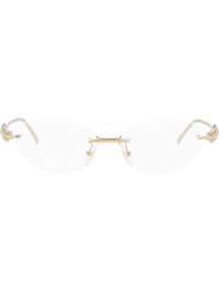 Cat-eye rimless metal-frame optical glasses in gold tone. · Adjustable rubber nose pads · Stud hardware at temples · Logo etched at temple tips · Includes case · Size: 57.16 140 Part of the Clash de Cartier collection. Supplier color: Gold Metal. Made in France 252346F004001