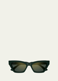 Cartier cat-eye sunglasses in acetate Lens/bridge/temple (in mm): 53-18-140 Gradient lenses; logo on corner Saddle nose bridge Logo on temples Thin, tapered arms Logo on earpieces 100% UVA/UVB protection Made in Italy Proposition 65 warning for California residents Online Inquiries: BGS21_D4R10| Store Inquiries: #4639377