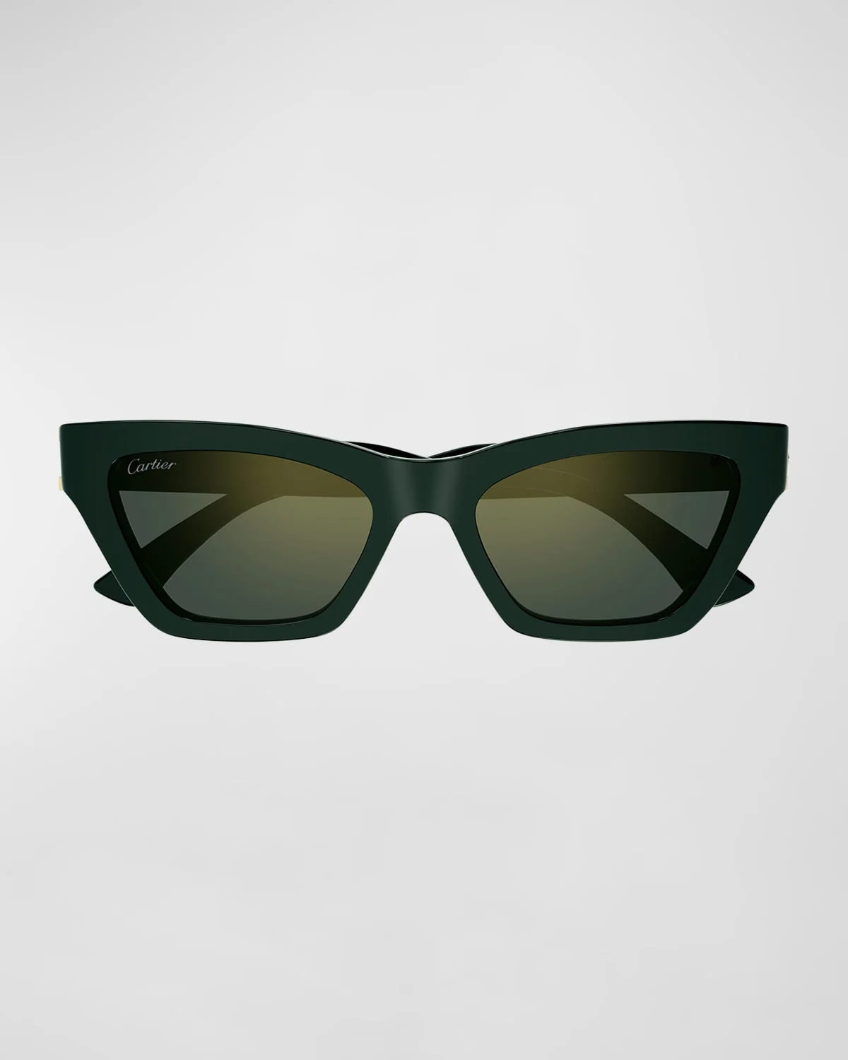 - Cartier cat-eye sunglasses in acetate - Lens/bridge/temple (in mm): 53-18-140 - Gradient lenses; logo on corner - Saddle nose bridge - Logo on temples - Thin, tapered arms - Logo on earpieces - 100% UVA/UVB protection - Made in Italy - Proposition 65 warning for California residents - This product contains perfluoroalkyl and polyfluoroalkyl substances (PFAS). For more information, please visit the manufacturer’s website.