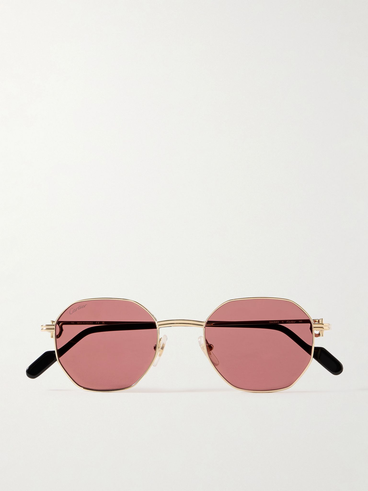 Cartier's Eyewear's sunglasses are crafted with meticulous attention to detail. This pair is made from polished gold-tone metal that's cast in the shape of a 'C' at the temple and has hexagon frames and adjustable nose pads. They'll elevate just about any outfit. Details & Care - Gold-tone metal - Come with a case - 100% UV protection