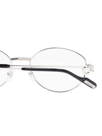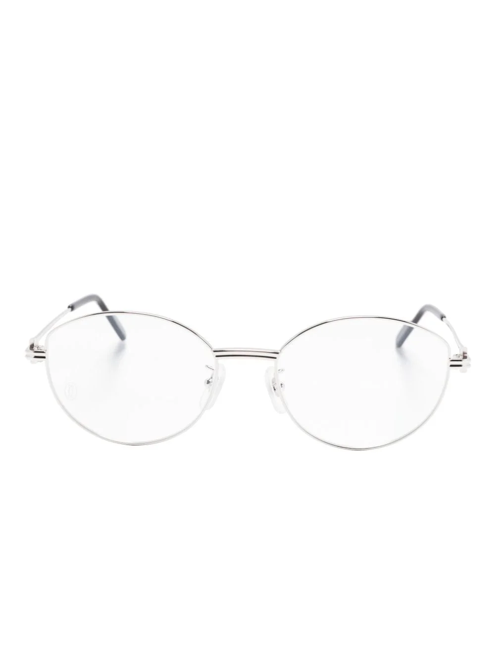 oval-frame glasses Highlights - Silver-tone - Metal - Oval frame - Clear lenses - Nose pads - Logo plaque at the arm - Curved tips - All glasses from farfetch are sold as non-prescription frames. - These glasses come with a protective case. Made in France Composition Metal 100% SIZE & FIT Measurement Total Width 5.51 in(14 cm) Lens Diameter 2.12 in(5.4 cm) Bridge Width 0.7 in(1.8 cm) Arm Length 5.7 in(14.5 cm)