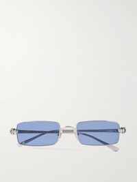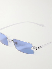 Panthère rectangle-frame crystal-embellished silver-tone sunglasses Silver