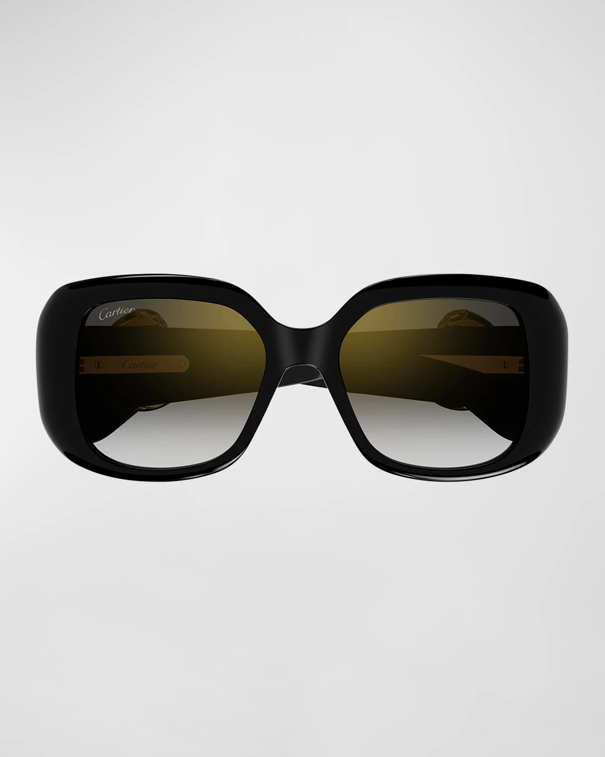- Cartier "CT0471SA" square sunglasses in acetate - Lens/bridge/temple (in mm): 54-17-145 - Gradient lenses; logo on corner - Saddle nose bridge - Logo on temples - Wide, tapered arms - 100% UVA/UVB protection - Made in Italy - Proposition 65 warning for California residents