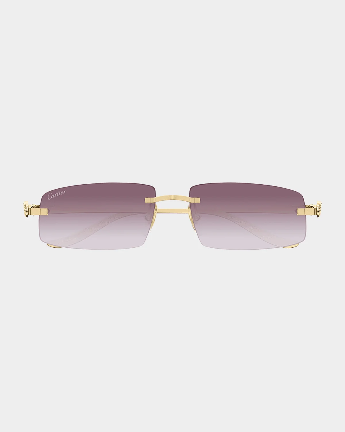 - Cartier rimless rectangle sunglasses in metal - Part of the Panthere collection - Lens/bridge/temple (in mm): 58-16-135 - Gradient lenses - Adjustable nose pads - Signature panther on temples - 100% UVA/UVB protection - Made in Italy - Proposition 65 warning for California residents
