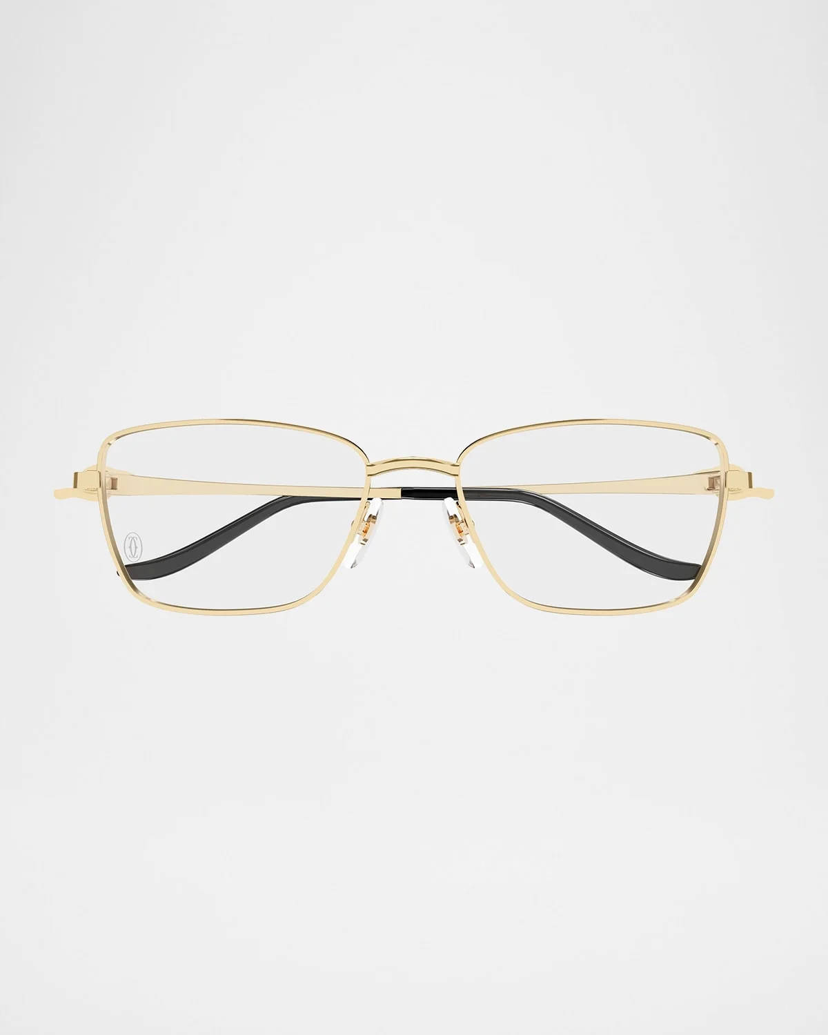 From the Panthere de Cartier Collection, these metal optical glasses by Cartier celebrate the untameable elegance of the panther, the Maison's emblematic animal. Lens/bridge/temple (in mm): 5517135 Can be fitted with prescription lenses Square frames Adjustable nose pads Thin, tapered arms with Panthere icon at the hinges Acetatecapped temple tips Includes case and cleaning cloth Made in France