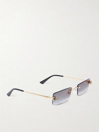 Cartier makes some of the most elegant eyewear you can find. These 'Panthere Classic' sunglasses are made from gold-tone metal with a sculptural take on the iconic panther head at each temple and rimless, angular lenses. Acetate tips ensure they feel comfortable.