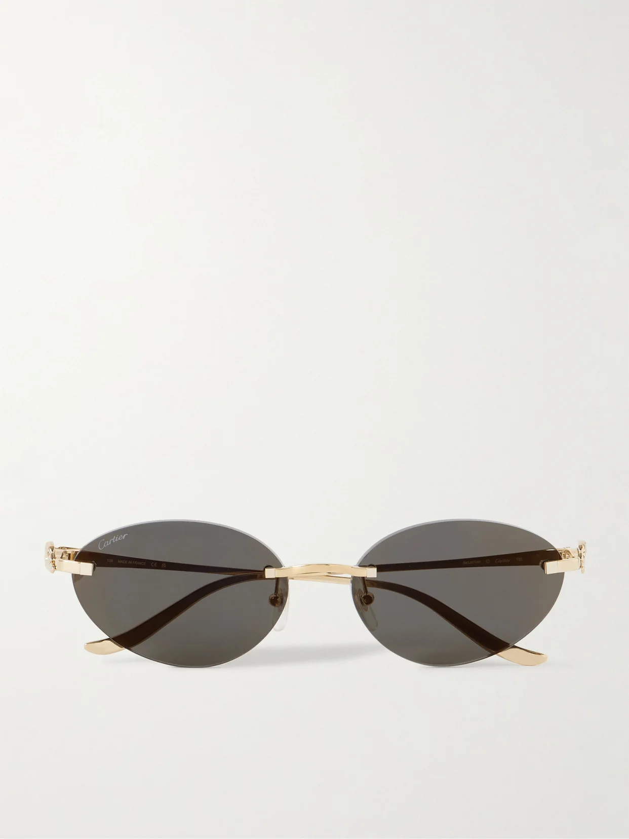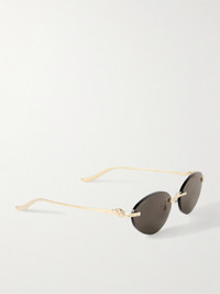 Cartier Eyewear's ‘Panthere' sunglasses feel like an extension of the house's iconic jewelry. Made in France from gold-tone metal, this cat-eye pair has a rimless design and slim arms sculpted with the feline at the temples.