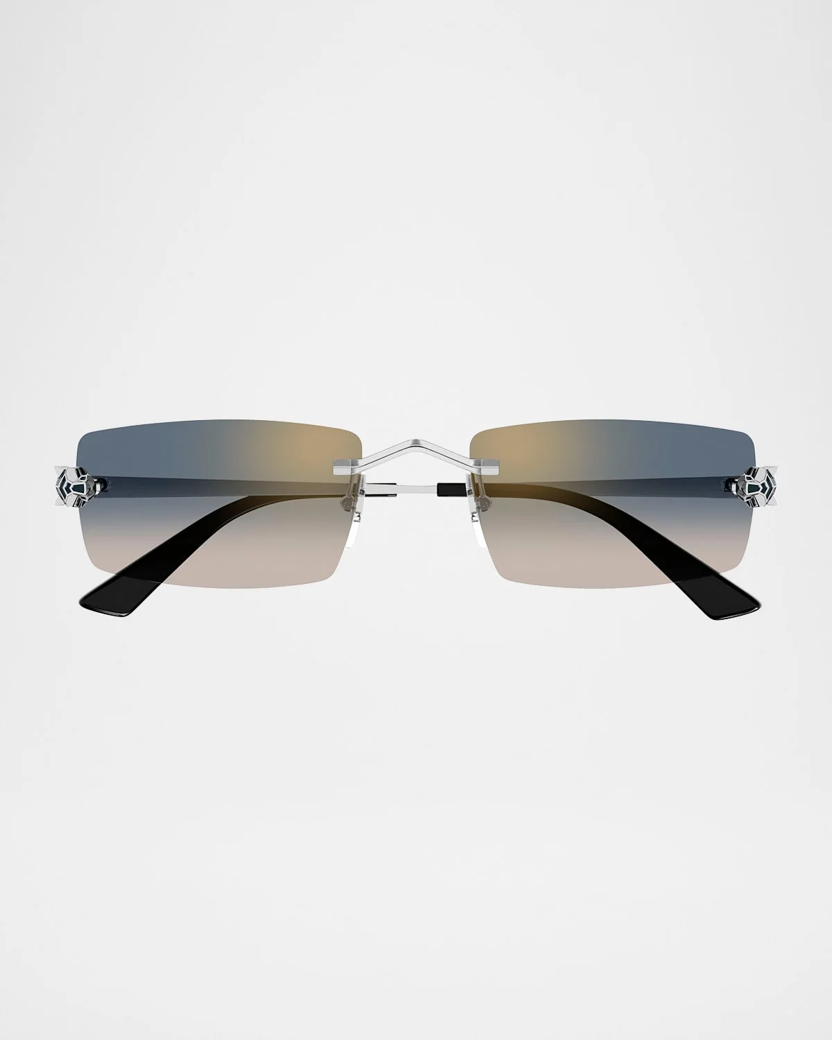 Panthere Rimless Rectangular Metal Sunglasses