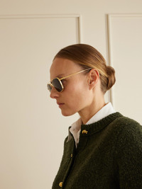 With their sharp angles, Cartier Eyewear's sunglasses are totally timeless. They're made from gold-tone metal with a strong brow bar and cabochon-tipped temples, nodding to the house's famed watches.