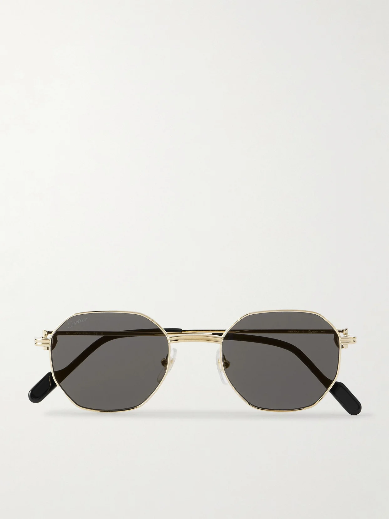 Cartier's Eyewear's sunglasses are crafted with meticulous attention to detail. This pair is made from polished gold-tone metal that's cast in the shape of a 'C' at the temple and has hexagon frames and adjustable nose pads. They'll elevate just about any outfit.