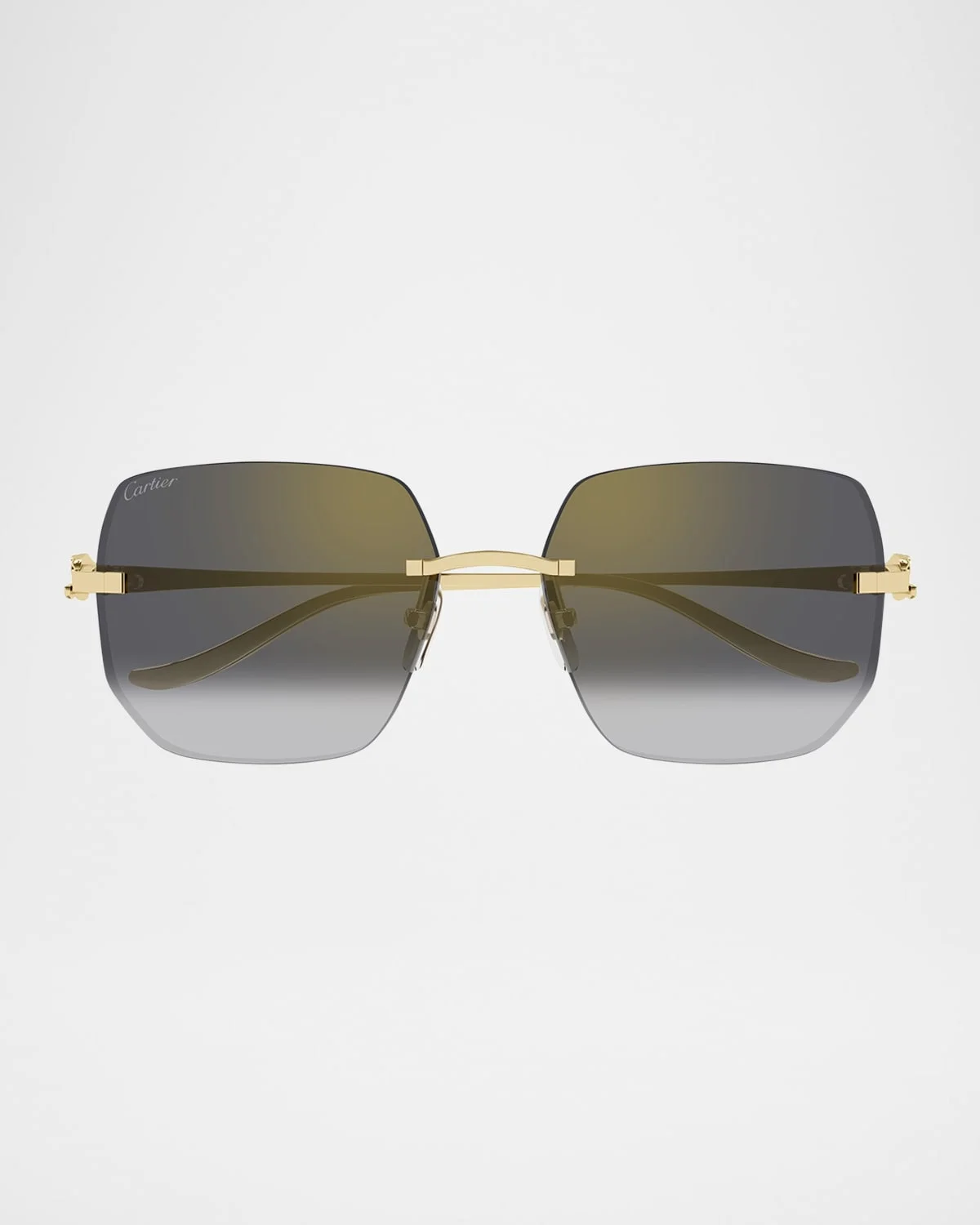 - Cartier "CT0549S" butterfly sunglasses in metal - Eye/bridge/temple (in mm): 57-16-135 - Rimless gradient lenses; right logo script - Adjustable nose pads - Thin, tapered arms - 100% UVA/UVB protection - Made in France - Proposition 65 warning for California residents