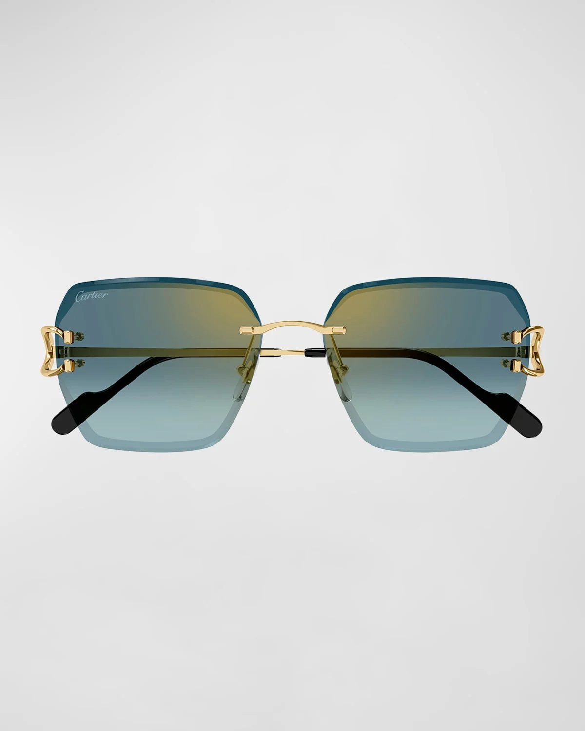- Cartier "CT0466S" rimless butterfly sunglasses in metal - Lens/bridge/temple (in mm): 58-16-145 - Gradient lenses; logo on corner - Adjustable nose pads - Thin, tapered arms - 100% UVA/UVB protection - Made in France - Proposition 65 warning for California residents