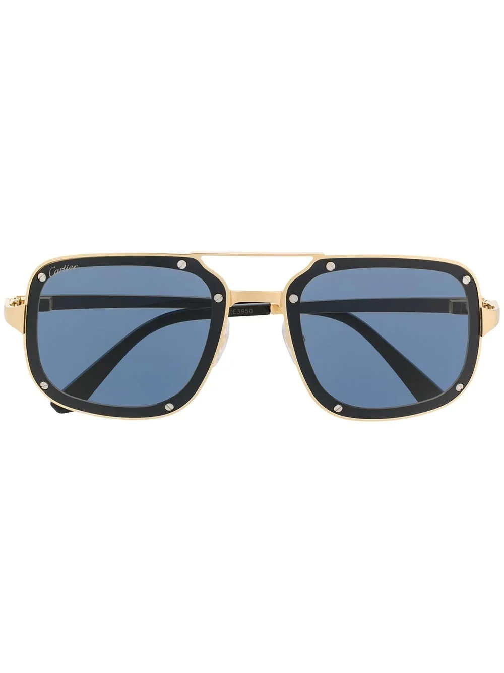 Santos de Cartier square-frame sunglasses We know life isn't always smooth sailing but sometimes the smallest things can make it better. Designed with a square frame and decorated with the brand's signature screw detailing, these black and gold-tone Santos de Cartier sunglasses from Cartier Eyewear are the perfect accessory to help you look on the bright side in style. Feeling better yet? Featuring tinted lenses, 100% UV protection, a logo decal on the lens, a double nose bridge, nose pads, a brand logo on external arm and straight arms with curved tips. This item comes with a protective case. Imported Composition Titanium 100%, Acetate 100% SIZE & FIT Measurement Arm Length 5.51 in(14 cm) Bridge Width 0.66 in(1.7 cm) Lens Diameter 2.28 in(5.8 cm) Total Width 5.82 in(14.8 cm)