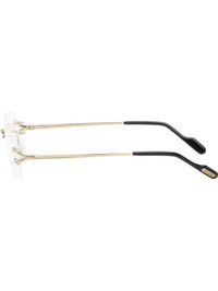 Rectangular rimless metal-frame optical glasses in gold tone. · Adjustable rubber nose pads · Logo hardware at hinges and tips · Acetate temple tips in black · Includes case · Size: 56.18 140 Part of the Signature C de Cartier collection. Supplier color: Gold Metal. Made in France 252346F004005