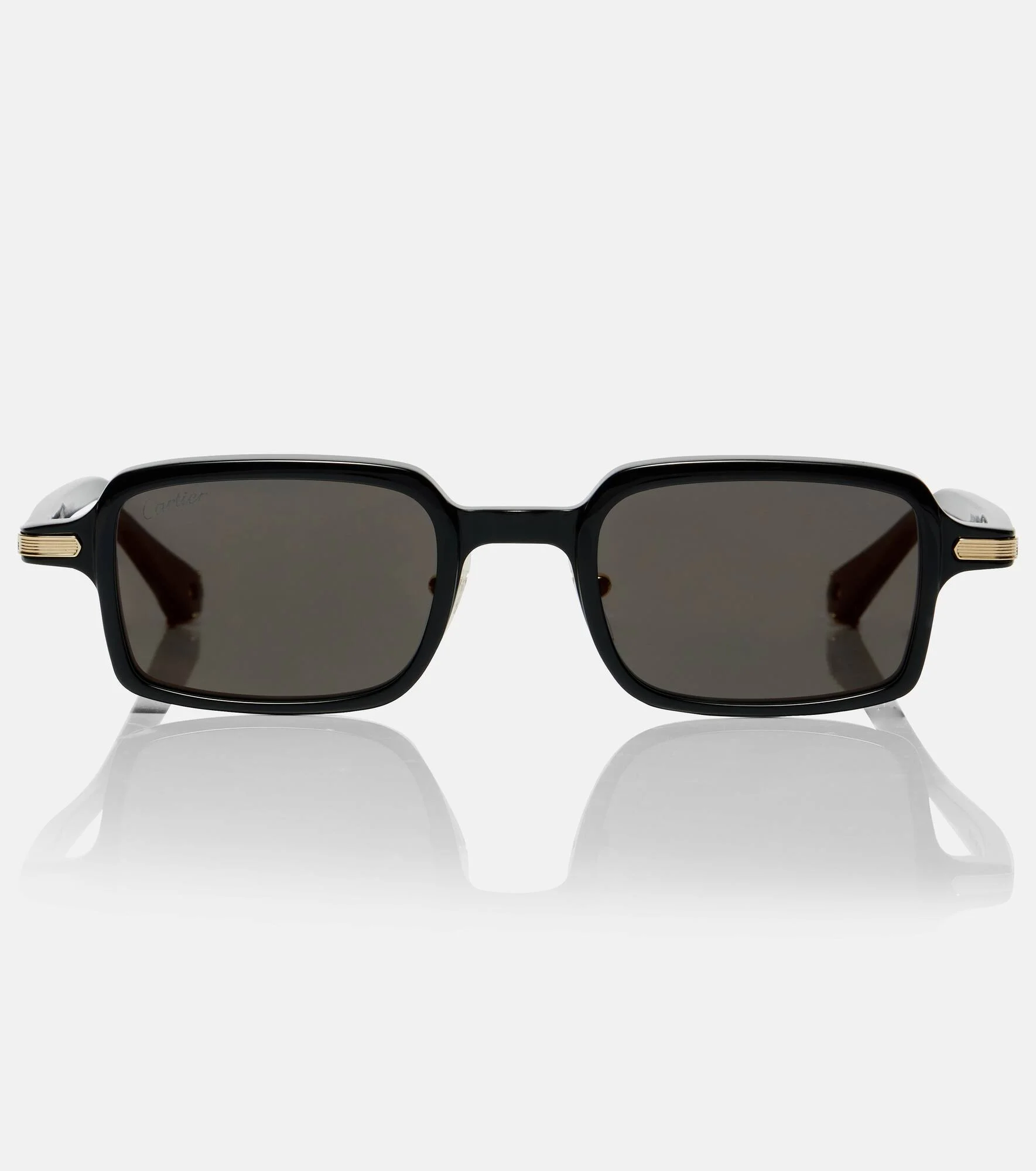 Cartier's expertise in jewelry-making extends to the Cartier Eyewear Collection, a line of exquisite styles for everyday wear. The Signature C sunglasses boast black acetate frames and rectangular grey lenses. Product Details - Frame material: acetate - Frame color: black - Lens filter category 3 - Lens color: grey - Made in Italy - Includes: case and presentation box, cleaning cloth - The color of the case may vary - Item number: P01100155 Size & Fit - Lens width: 49mm-1.95" - Bridge size: 22mm-0.85" - Earpiece length: 145mm-5.7"