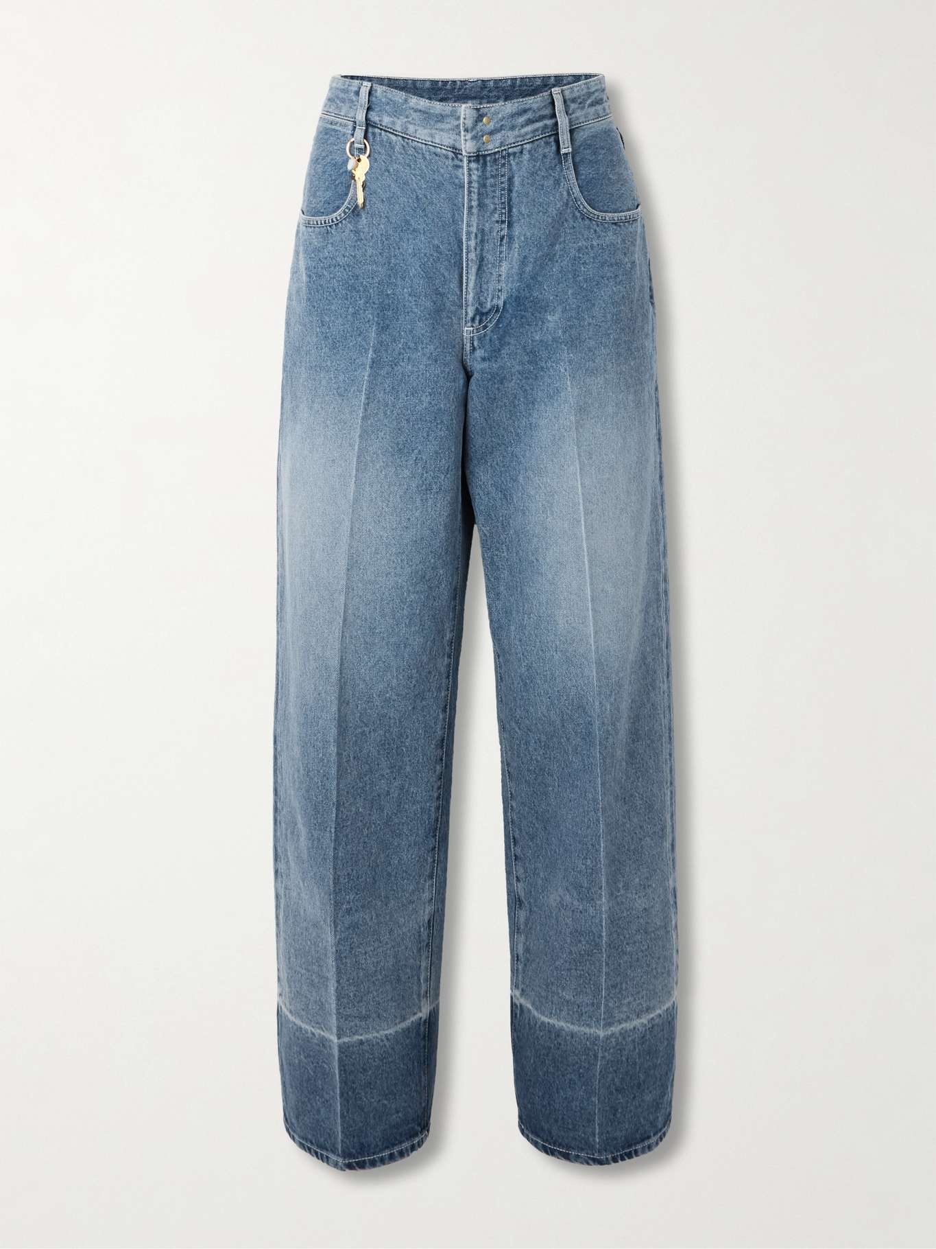 EDITORS'NOTES "Boyish" and completely cool, Carven's jeans are unlike any other pair in your wardrobe. They're cut from selvedge denim to sit low on the waist and have loose legs with slouchy hems detailed with fade marks. There's also a detachable key and faux pearl charm on the belt loop. SIZE & FIT Model measurements: - Fits true to size, take your normal size - Boyfriend style, designed to be worn loose and low on the hips - Mid-weight, non-stretchy fabric - Model is 177cm/ 5'10" and is wearing a FR 36 - Bust: 80cm/ 31.5" - Waist: 60cm/ 23.5" - Hip: 89cm/ 35" DETAILS & CARE - Blue selvedge denim - Concealed button, hook and zip fastening at front - 100% cotton - Hand wash