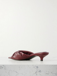 Carven's mules debuted on the Spring '25 runway in a few different colors - this burgundy pair brought beautiful jewel tones to an all-white outfit. They're made from leather that's knotted at the toes and rest on manageable kitten heels. Size & Fit - Fits true to size, take your normal size - Only available in full sizes, go up to the nearest whole size if you take a half size - French sizing Details & Care - Heel measures approximately 40mm/ 1.5 inches - Burgundy leather - Slip on