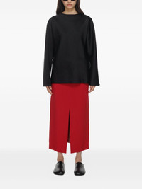 front-slit midi skirt Highlights - Red - Centre-front slit - High waist - Concealed zip fastening - Flat front Imported Composition Cellulose Acetate 50%, Viscose 50% Washing instructions Read Manufacturer Guidelines