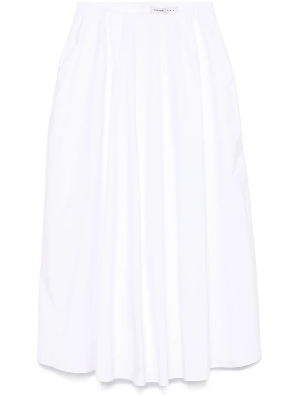 cotton midi skirt Highlights - White - Concealed rear zip fastening - Two side inset pockets - Rear slit - Flared design Imported Composition Outer: Cotton 100% Lining: Cotton 100% SIZE & FIT Model measurements Height 5 ft 11 in(1.8 m) Bust/Chest 32.67 in(83 cm) Hips 36.22 in(92 cm) Waist 24.4 in(62 cm) FittingInformation This midi-length skirt is intended to be worn just below the waist The vented hem offers movement at the rear Made from a midweight non-stretch fabric, this piece offers minimal elasticity when worn